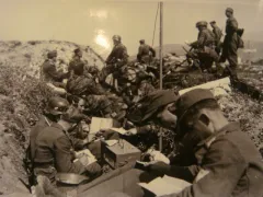 Gliders that brought airborne troops grouped at the lower fields around Drvar.