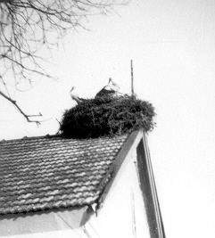 It's gotten really warm here, a bit early. So we changed our winter clothing into our summer suits of blue linen, almost like clothing designed for the tropics. It's also gotten quite comfortable in our village. The blossoms on the trees have already come out and now everything is beautifully green. Our house has a small veranda which is entirely glassed in. We've decked this area out so it's quite relaxing and pleasant now, and it's now our relaxation area. There are wild grapes all over the place, just like in Anger in the old days [My birthplace in Eastern Styria, where my parents lived in 1929 and where Bibi spent his youth -WW]. There's a big stork's nest on the roof and they chatter all day long.