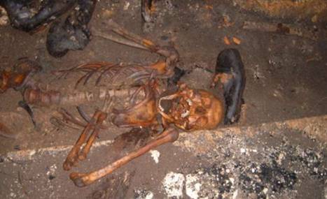 Photos: Unclothed skeletons wearing shoes appear to have died in agony in a mass grave in Huda Jama, Slovenia. Positions indicate there was movement before the victims expired (they were buried alive). (photos at http://www.javno.com/en/foto.php?id=19&rbr=12471&idrf=541779 -no longer available)